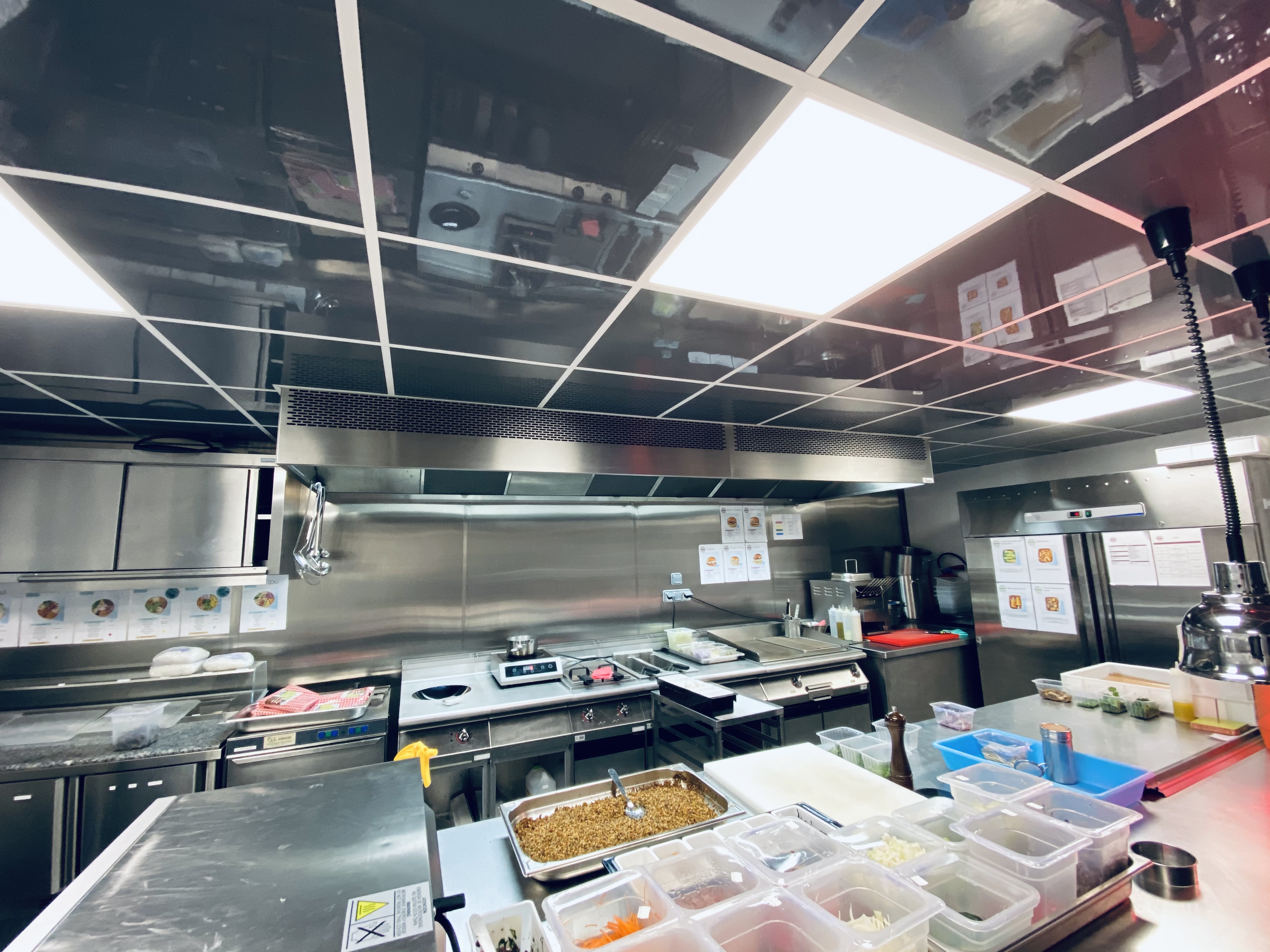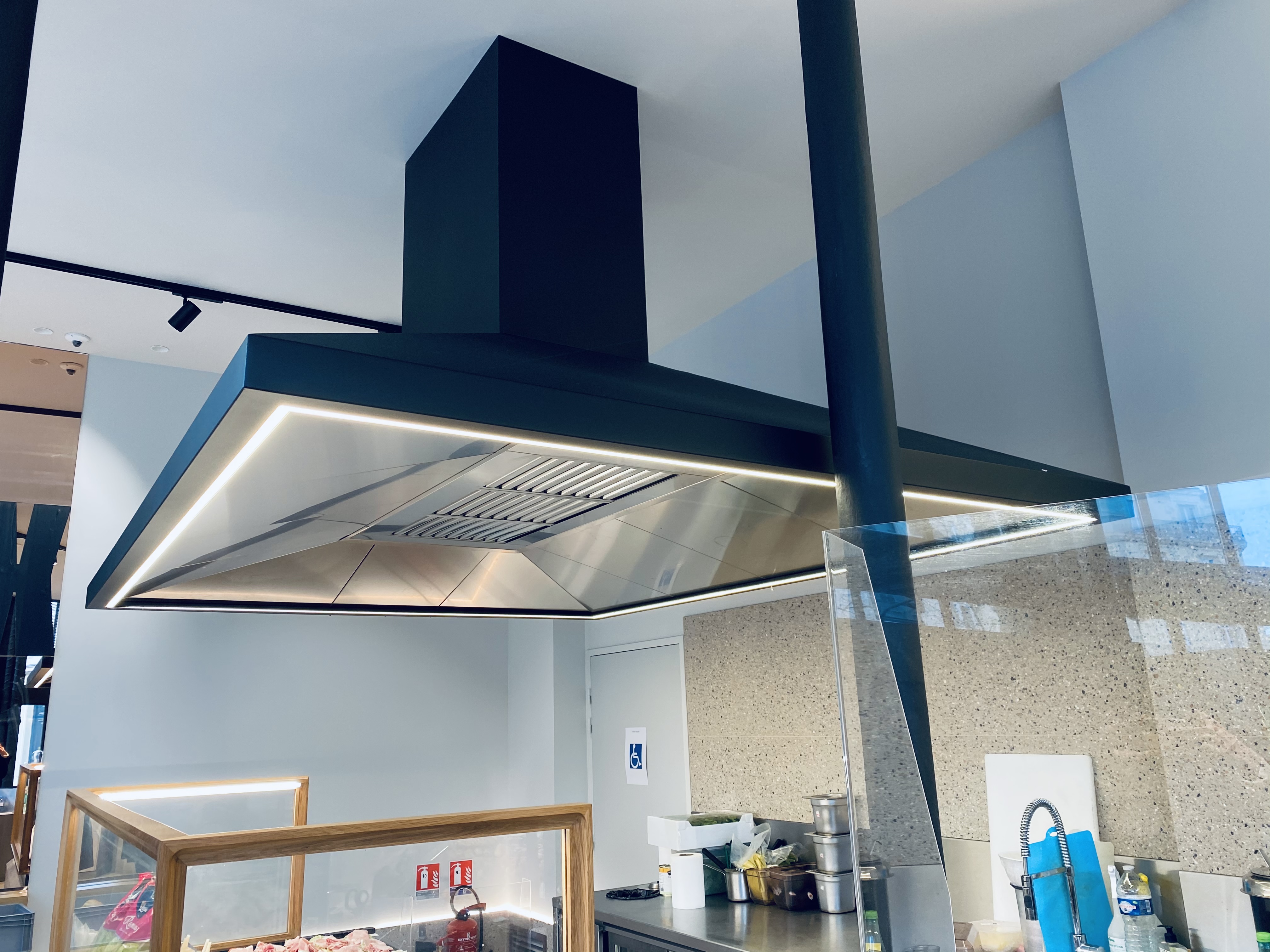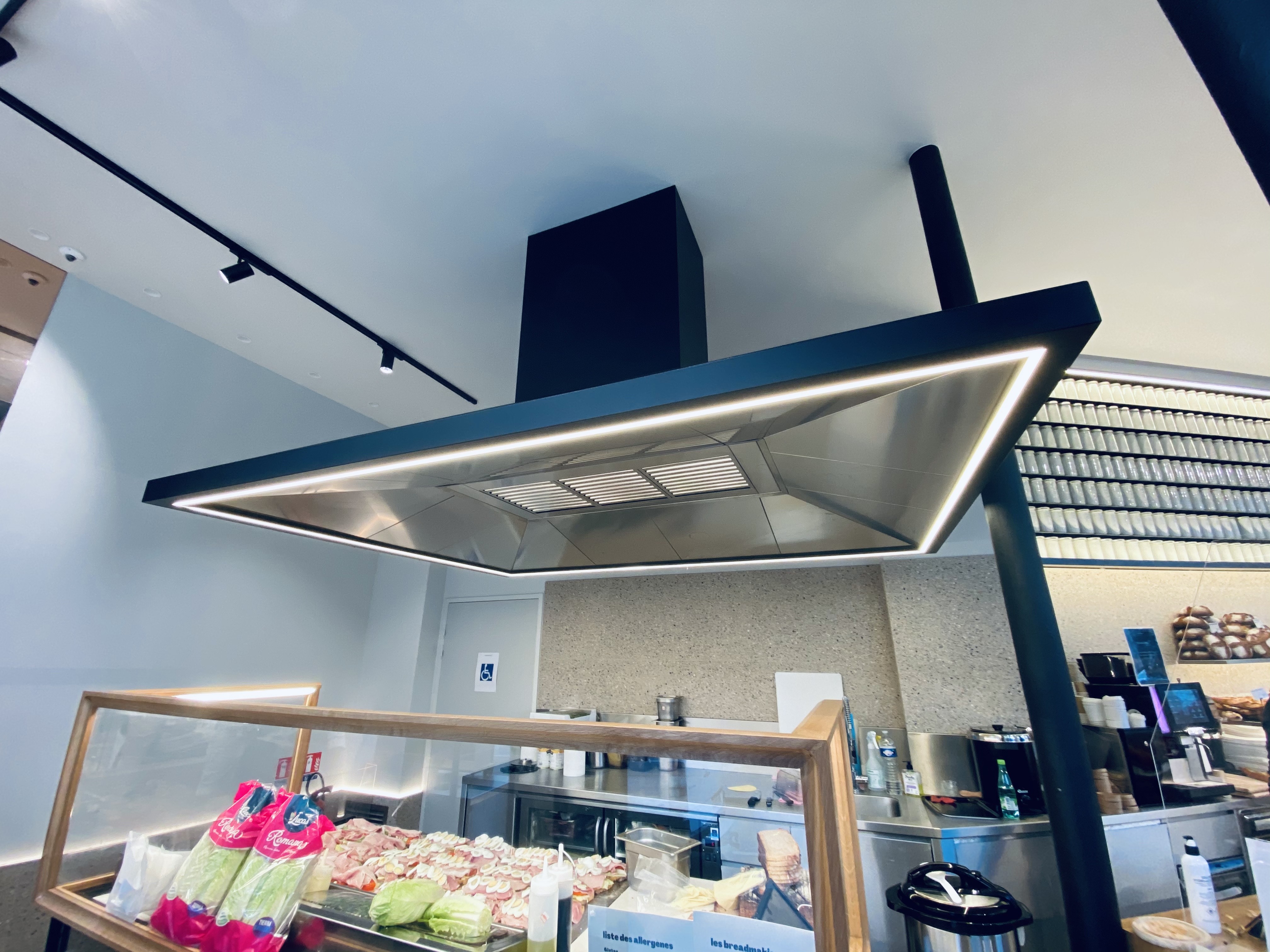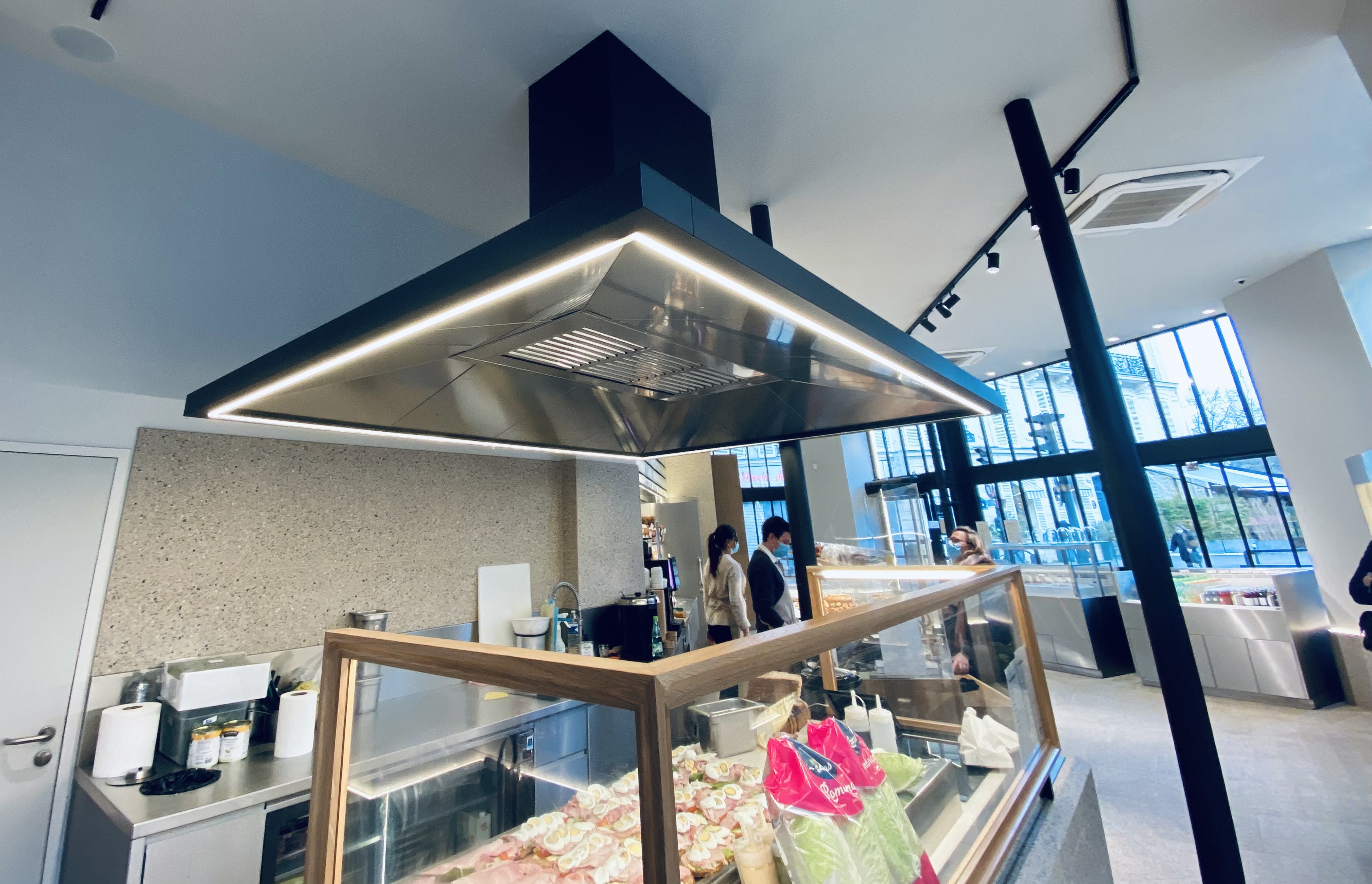 Création d’une hotte sur-mesure peinte pour l’extraction du Teppanyaki.